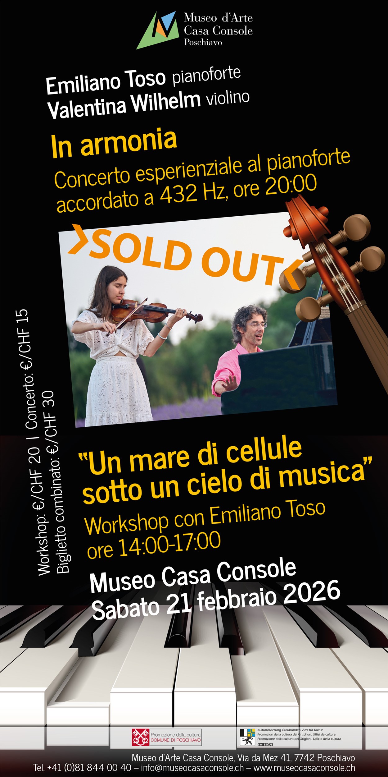 Emiliano Toso – SOLD OUT 14. February 202614. February 2026 Museo d'arte Casa Console Leave a comment Share on facebookTweet on twitter Ringraziamo tutti coloro che hanno dimostrato interesse per questo evento.